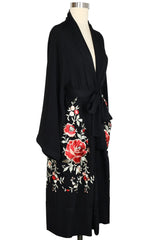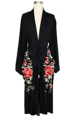 Our Art Deco inspired Deco Robe is recreated here with a new 1920s embroidery pattern. This one is a new favorite and features the most lovely shades of soft reds and mint greens. Easy to wear as a lingerie robe or as a light jacket over ANYTHING! You can style this a zillion different ways and its easy sizing makes it a perfect gift!