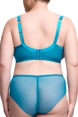 Dita Von Teese's Fortunia Curve Plunge bra is an underwired bra and features the embroidery on "illusion" mesh through the sheer cups. The cups have a mesh 'sling' for additional lift and support. It has velvet shoulder straps and detailing and jewel trinket trim.