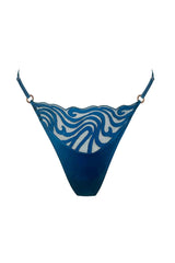This thong is crafted with a rigid tulle base featuring embroidery from fibers with recycled content, it combines sustainability with a striking aesthetic. The adjustable waist straps allow for a tailored fit, while the high-cut silhouette creates the illusion of elongated legs. Finished with bold hardware details in rose gold color, this piece makes a bold and sophisticated statement.