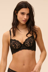 Underwired half-cup bra in embroidery.
