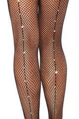 Go full on glam in the Astrid Rhinestone Backseam Fishnet Tights. These eye-catching pair of tights work overtime to give you a form-flattering fit that's gorgeous and comfortable. Pair it with your favorite sexy lingerie for a showstopping look!