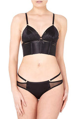 This statement crop top is predominantly comprised of Signature satin elastic strapping, with a soft mesh underlay on the cups. This piece is designed to be seen.