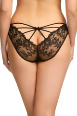 The Yva Backless Bikini is delightful and frivolous with its lace front and open back framed by lace. Flirty and elegant.