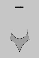 The V-neck thong bodysuit – Pure Tentation explores contrasts. Its cut enhances the figure with a plunging V-neckline at the front and an ultra-sheer back scooped down to the small of the back. Made from light tulle and opaque microfiber, it plays with layering and illusion. A discreet hook-and-eye closure at the crotch ensures comfort, while a back neck opening makes it easy to slip on. Cotton lining at the crotch.