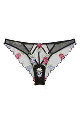 Take a bite. Fleur du Mal's Pineapple Embroidery Cheeky, featuring custom pineapple embroidery with silver nailhead details. Ultra flirty cheeky cut scalloped edge and strappy keyhole cutout to amp up the sex appeal. Pair with the matching Pineapple Embroidery Bra & Garter for a set that's good enough to eat.